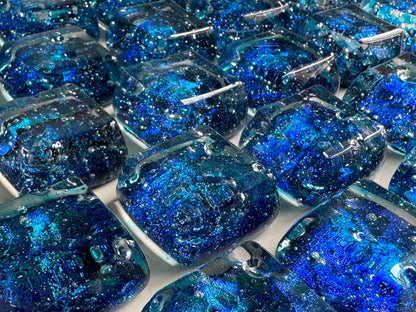 This knob features bright shades of blue, teal, and indigo mix with sparkling turquoise and silver. Lots of air bubbles add depth and complexity. They can catch your eye from across the room! It is a 3 day process to make these beauties.