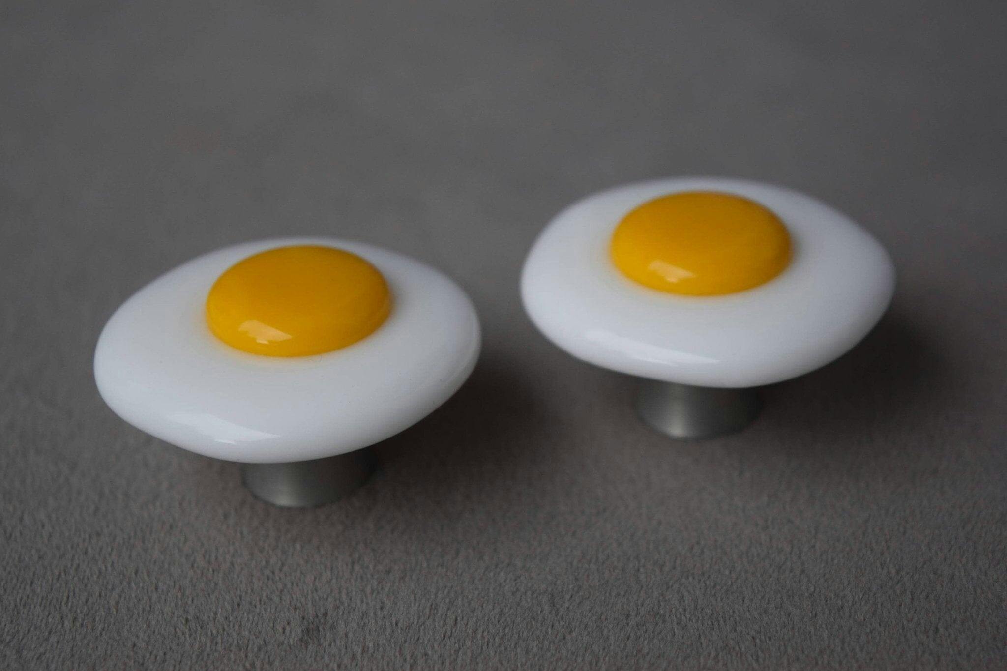 These whimsical, realistic looking fused glass sunny side up eggs make for the perfect kitchen hardware. Guaranteed to brighten up the room!