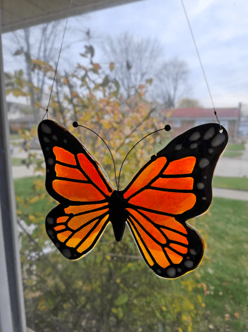 Crafted using ground glass powders on hand-cut glass, this butterfly is a true labor of love. The multistep process concludes with a kiln firing, ensuring its vibrant colors never fade. Due to its handcrafted nature, each Monarch is uniquely one of a kind, with subtle variations that make it extra special.